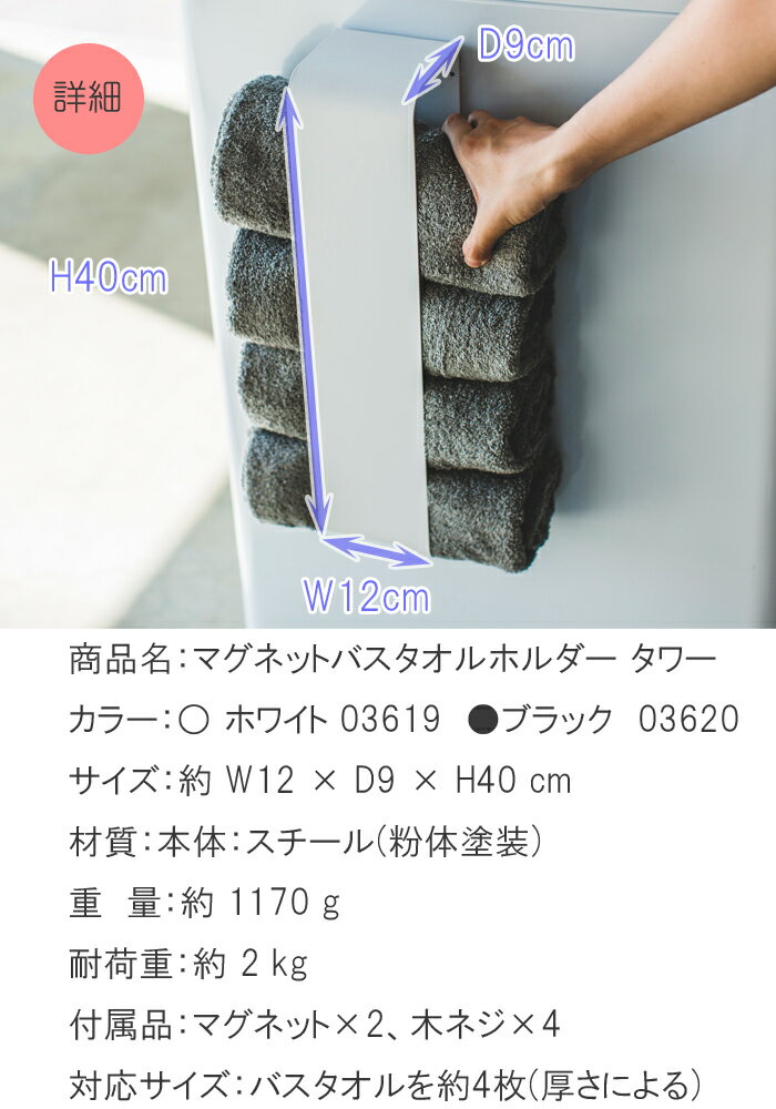YAMAZAKI タワー マグネットバスタオルホルダー バスタオル 収納 ラック マグネット 洗濯用品 サニタリー 省スペース 磁石 洗濯グッズ ランドリー 便利 省スペース シンプル おしゃれ 雑貨 ホワイト 03619 ブラック 03620