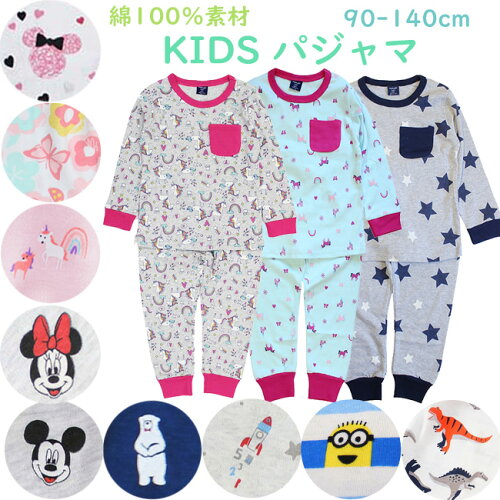 長袖 パジャマ 綿100% キッズ ジュニア 子供 ルームウエア 上下セット 女の子 男の子 90 100 110 120 130 140cm【ネコポス可】【子供服専門店 かわいい 子供用 kids boys girls プレゼント 内祝い 贈り物 キッズ服・ベビー服・専門 幼稚園 保育園 UV対策 秋冬 acefad】