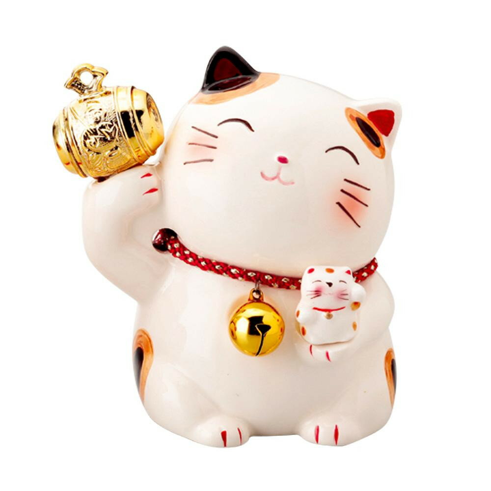 【代引き・同梱不可】金小槌猫貯金箱 K3568置き物 日本製 インテリア